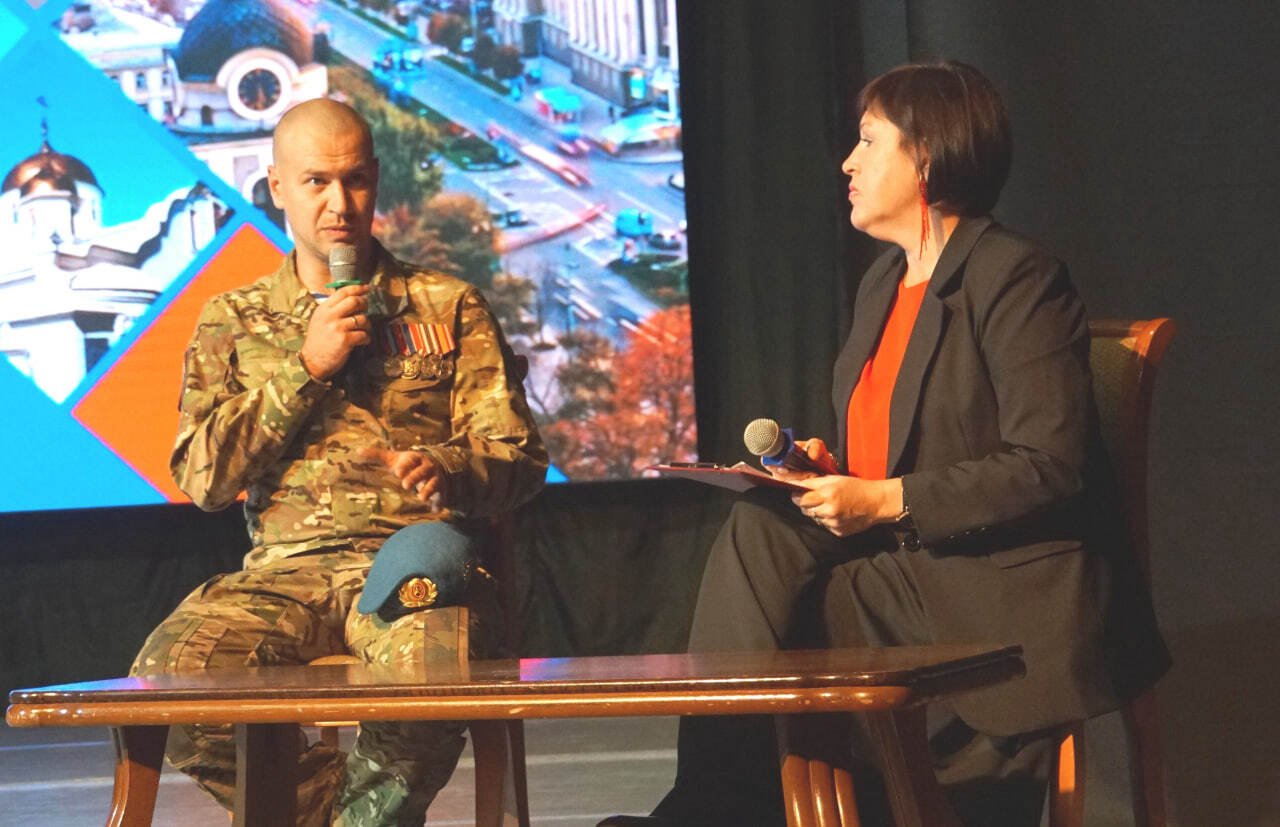 Перед ребятами выступил участник СВО Алексей Свиридов. Он рассказал, как живёт молодёжь в новых регионах и почему для них День воссоединения стал государственным праздником. Его слова дополнили творческие номера коллективов ДК «Юбилейный», создавшие атмосферу праздника.