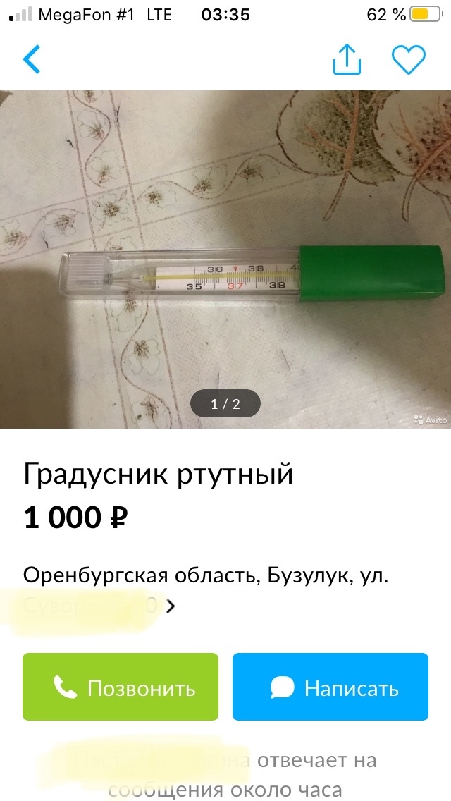 Тем временем на авито продают ртутные градусники, которые тоже сегодня в большом дефиците.
