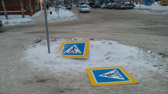Позавчера социальных сетях появились фотографии оторванных дорожных знаков «Пешеходный переход» на перекрестке улиц Ленина и Комсомольской.