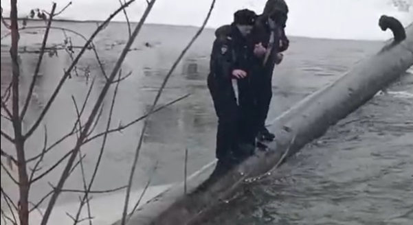 Очевидцы выложили видеозапись, на которой видно, как два человека в форме помогают мужчине добраться до берега по трубе. Автор ролика пишет: