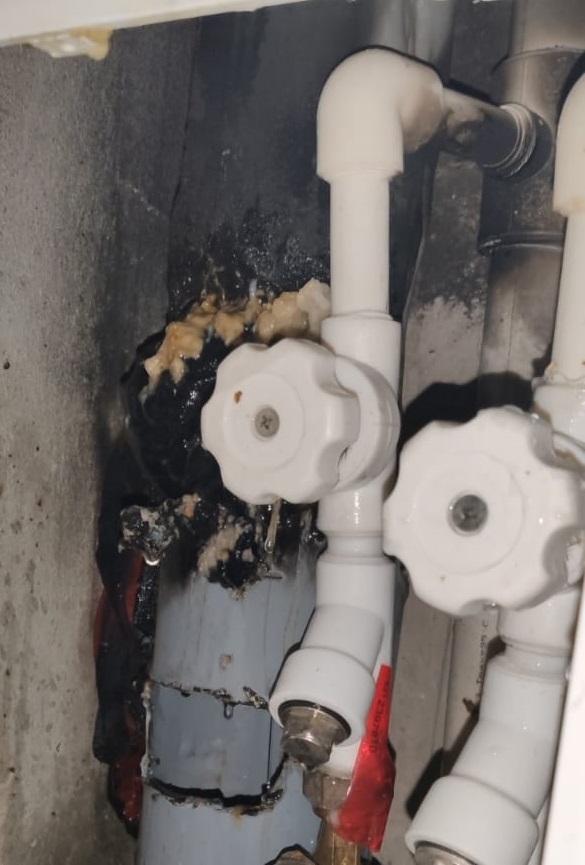 Что именно происходило в квартире – до сих пор загадка, соседи так и не услышали внятных объяснений, а дебошир дал дёру, когда в прямом смысле запахло жареным. Как оказалось, он разводил огонь, приготовив мангал и угли, потом устроил потоп. Чем-то ему не угодила канализационная труба – в ней он вырезал дыры.