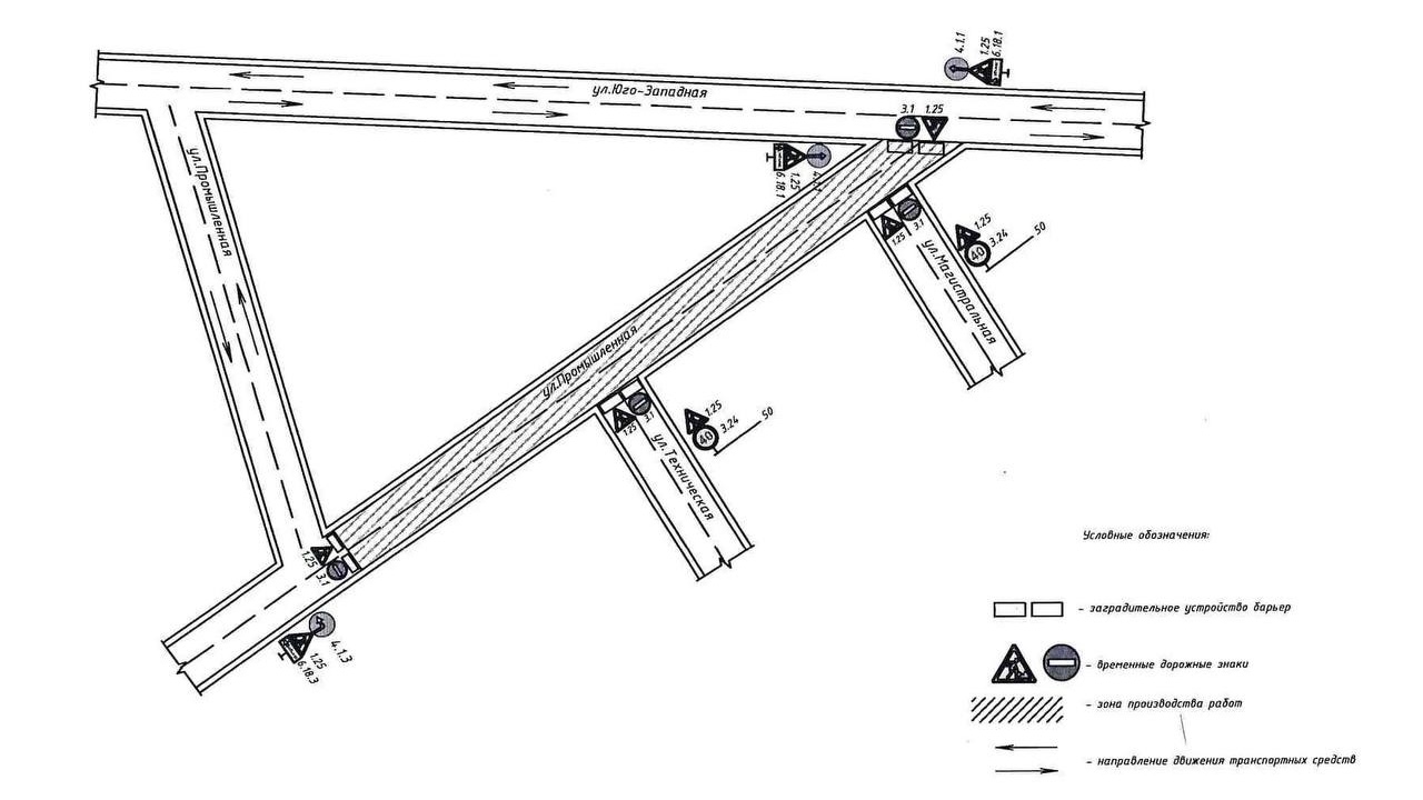 В связи с началом капитального ремонта дороги на участках улиц Юго-Западной и Промышленной будет перекрыто движение согласно схеме