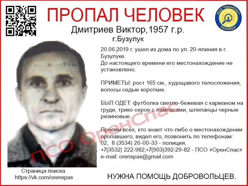 Просим всех, кто знает что-либо о местонахождении пропавших, видел их, позвонить по телефонам: 02, 8(35342)6-00-00, 6-00-33 - полиция, +7(35332) 222-982, +7 (903)392-29-82 - ПСО "ОренСпас", - сообщили волонтеры.