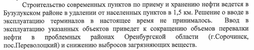 Сегодня два таких терминала строятся в нескольких десятках километрах от города Бузулука. Уже строятся. Два. Которые, конечно же, тот поток нефти, который есть, должны переместить с города, в том числе из этого объекта, туда.