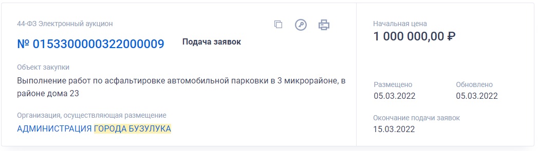 На сайте госзакупок появился лот "Выполнение работ по асфальтировке автомобильной парковки в 3 микрорайоне, в районе дома 23". Начальная цена контракта 1 000 000 рублей.