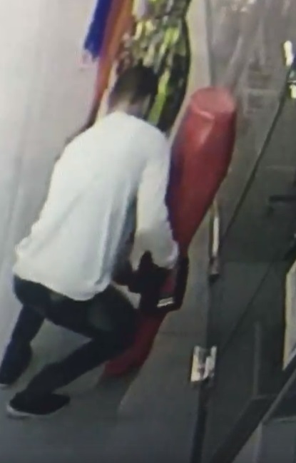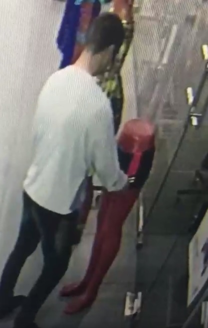 Убедившись, что за ним никто не наблюдает, мужчина снял с одного из манекенов купальные плавки. Оглядевшись по сторонам, парень сжал свою "добычу" в кулаке и поспешил скрыться.