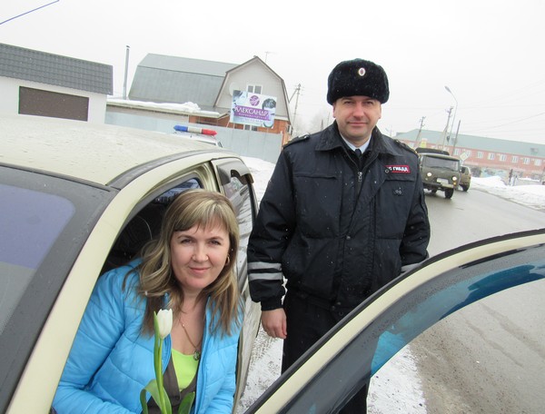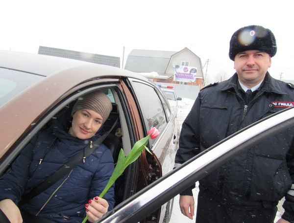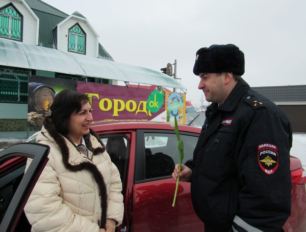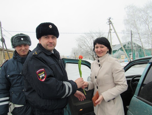 Акция проходила на одной из центральных улиц города Бузулука. Автоледи с восторгом реагировали на такие проявления и с удовольствием принимали цветы из рук инспектора.