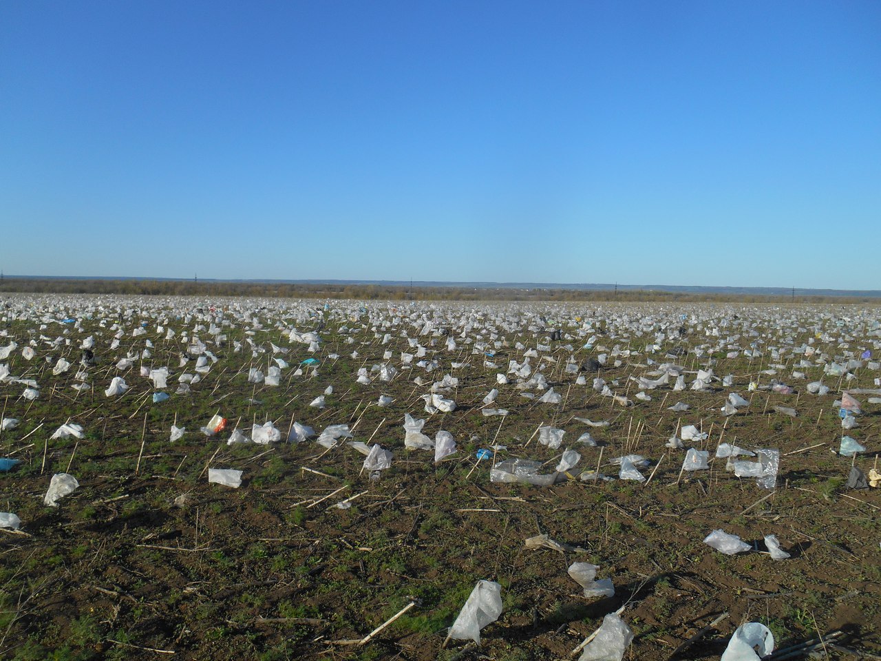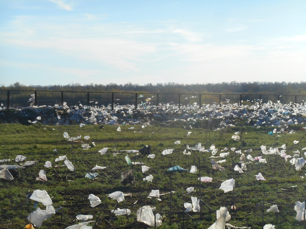 Возможно ситуация, которая образовалась в результате того, что полигон ТБО не правильно содержится. Причиной «разноса» мусора по полям могло стать то, что территория зоны полигона оборудована слишком маленьким ограждением.