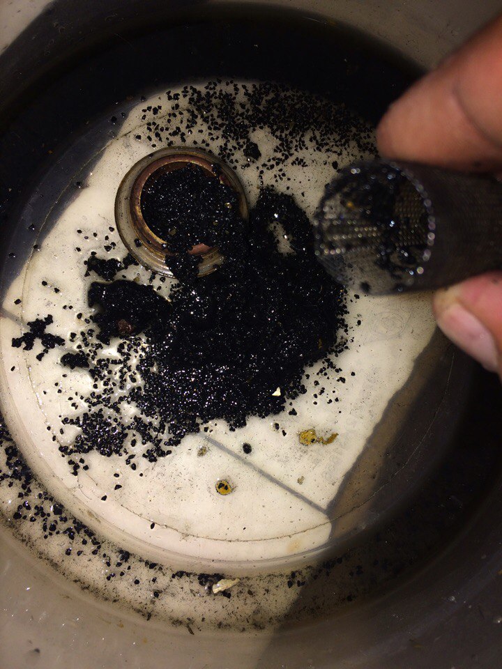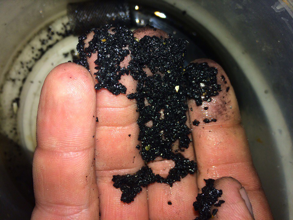 Жители поселка Красногвардеец жалуются на то, что в селе не только на все лето отключили горячую воду и регулярно на длительное время перекрывают холодную, так еще и после включения вода идет с грязью. Один из жителей поселка разместил в сети фото содержимого кранного фильтра. На фото видно, что большие, черные крупинки неизвестного вещества в большом объеме вышли из крана.