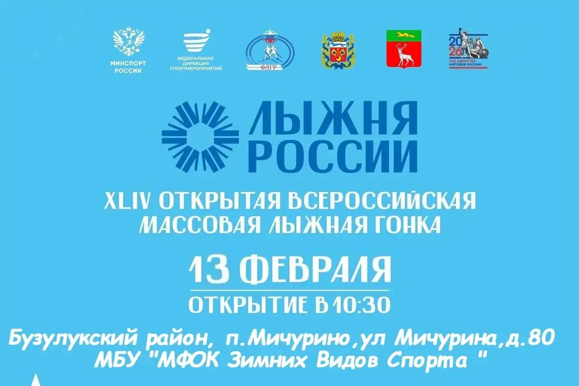 13 февраля в Бузулукском районе пройдёт масштабное зимнее спортивное событие - Всероссийская массовая лыжная гонка «Лыжня России».