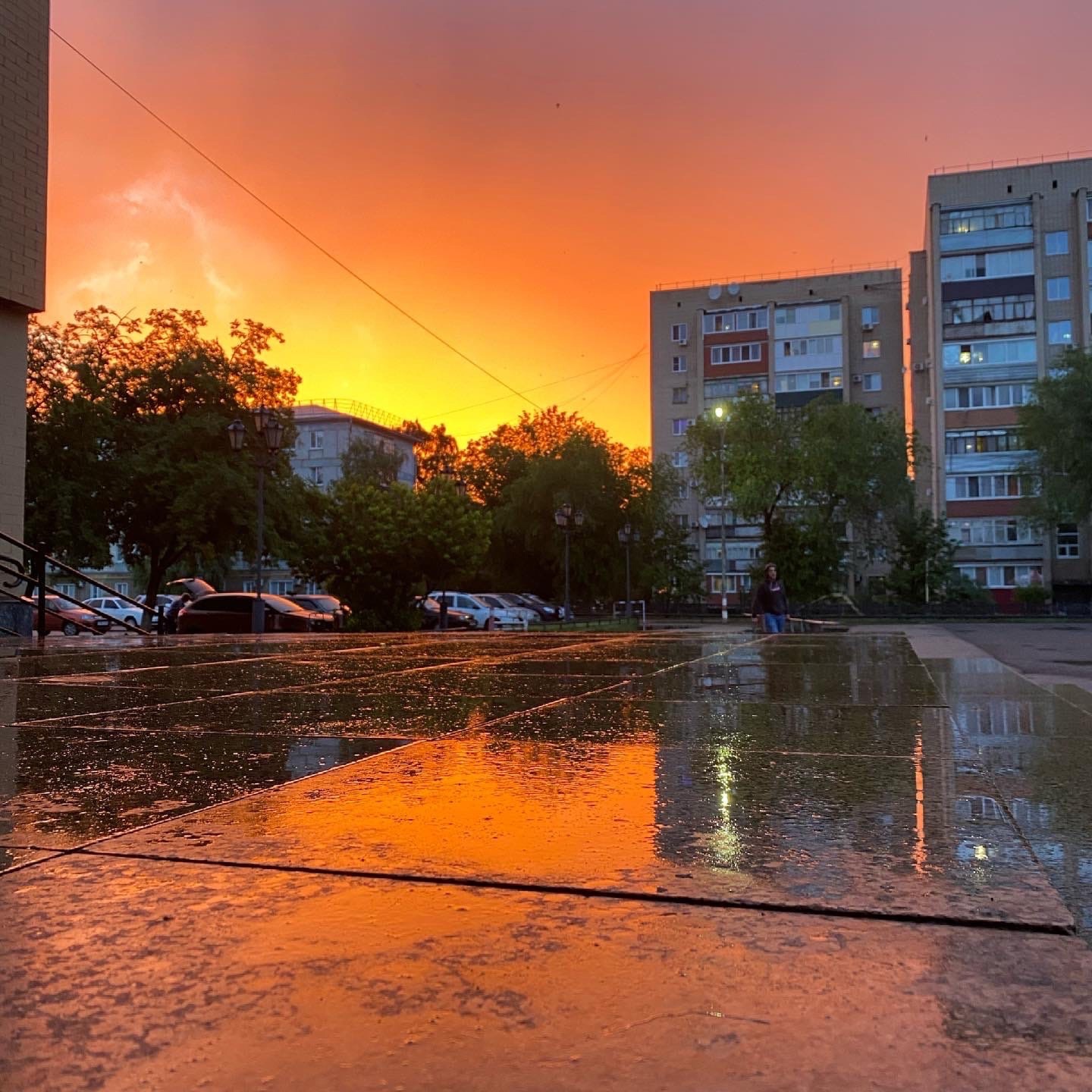 Под занавес богатого на красоты природы дня в небе над Бузулуком заалел фееричный закат. А кто-то стал свидетелем удивительной радуги.