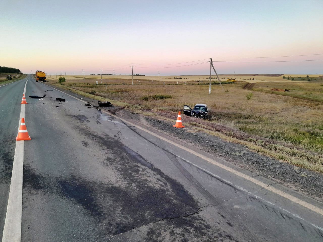 На автодороге Бугульма – Бугуруслан – Бузулук – Уральск 43-летний водитель, управляя автомобилем «Лада Калина», двигаясь со стороны Бузулука в сторону Бугуруслана, не выдержал безопасную дистанцию до впереди движущегося автомобиля «КамАЗ» и допустил с ним столкновение. После - водитель «Лады Калины» допустил съезд в правый по ходу движения кювет.
