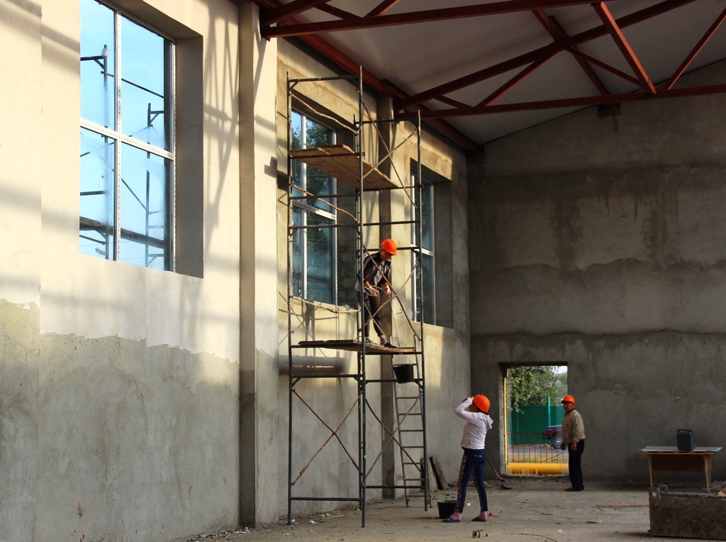 По плану это будет современное спортивное сооружение, а его площадь составляет более 500 квадратных метров. В настоящий момент по качеству выполненных работ нареканий к подрядчику нет. В новом спортивном зале будут раздельные раздевалки для мальчиков и девочек и душевые кабины.