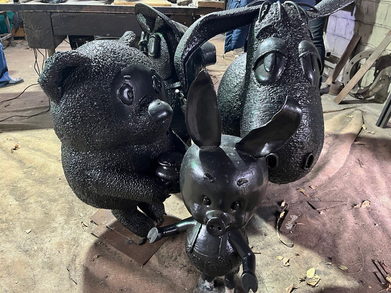 Автор фигур, скульптор Олег Душаков, завершает их реставрацию. Фигуры, созданные ещё в 2009–2010 годах, отлично выдержали время — лишь слегка потускнела краска. «Использовались прочные материалы и качественные краски, поэтому герои и спустя годы выглядят почти как новые», — рассказывает мастер. Среди его других работ — орёл в Троицком парке и известный Петрович у МУП ВКХ.