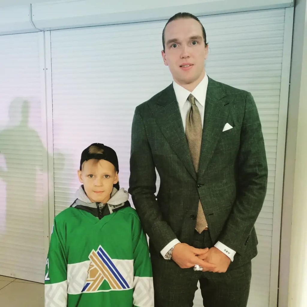 На фото Игорь Поверенных с Андреем Василевским, хоккеистом мирового масштаба, который в детстве занимался в секции "Салавата Юлаева", был отобран в сборную России на молодежный чемпионат мира 2012 и 2013, затем уже из "молодежки" - в сборную РФ, где в 2014 признан лучшим игроком. Сейчас Василевский является обладателем кубка Стэнли, вратарём команды НХЛ Тампа-Бэй.