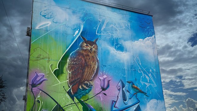 Работа оренбуржца Дмитрия Сумбаева «Редкий мир» представляет область на фестивале стрит-арта Приволжского федерального округа «ФормART». Гигантское граффити изображено на фасаде пятиэтажного здания на улице Туркестанской в Оренбурге. Центральной фигурой рисунка является филин. Работа творца призвана обратить внимание на редких птиц, животных и растений нашего региона.