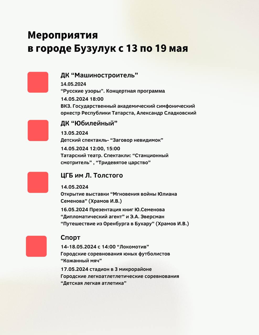 Мероприятия в городе Бузулук с 13 по 19 мая