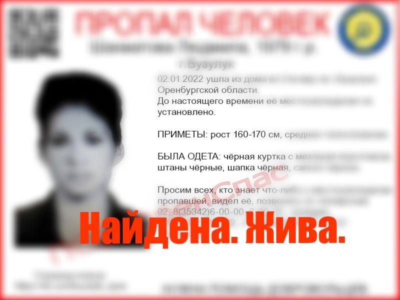 Буквально вчера информационно-новостной портал buzulukday.ru призывал всех, кому что-либо известно об ушедшей из дома 2 января жительнице Бузулука, сообщить волонтерам или полицейским. Сегодня стало известно о том, что бузулучанка нашлась. Добровольцы лаконично ответили: "Жива".