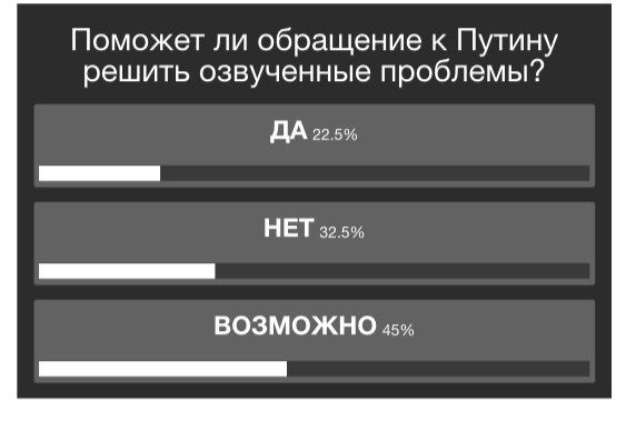 По результатам опроса, проведенного на портале Buzulukday накануне пресс-конференции, вышло, что жители Бузулука в большинстве своем не исключают положительный исход проблем, озвученных земляками для прямой линии с президентом.