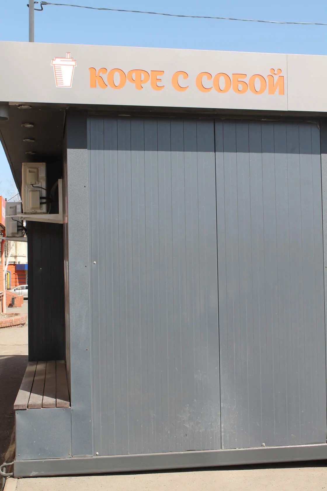 На днях стало ясно, что установленное помещение – все-таки не для ожидающих «маршрутку». С одной стороны повесили вывеску «Кофе с собой», с другой – «Пекарня».