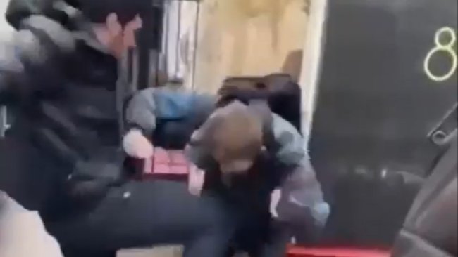 Русский паренек оказался не из робкого десятка и стал активно сопротивляться. Вокруг в это время стояла молодежь, но никто не спешил вмешиваться в конфликт. Слышно только женский крик: "Что стоите? Чего не разнимете?". В какой-то момент двое взрослых оттесняют нападавшего в сторону со словами: "Давайте только не здесь, пацаны. Белый день, народу столько".
