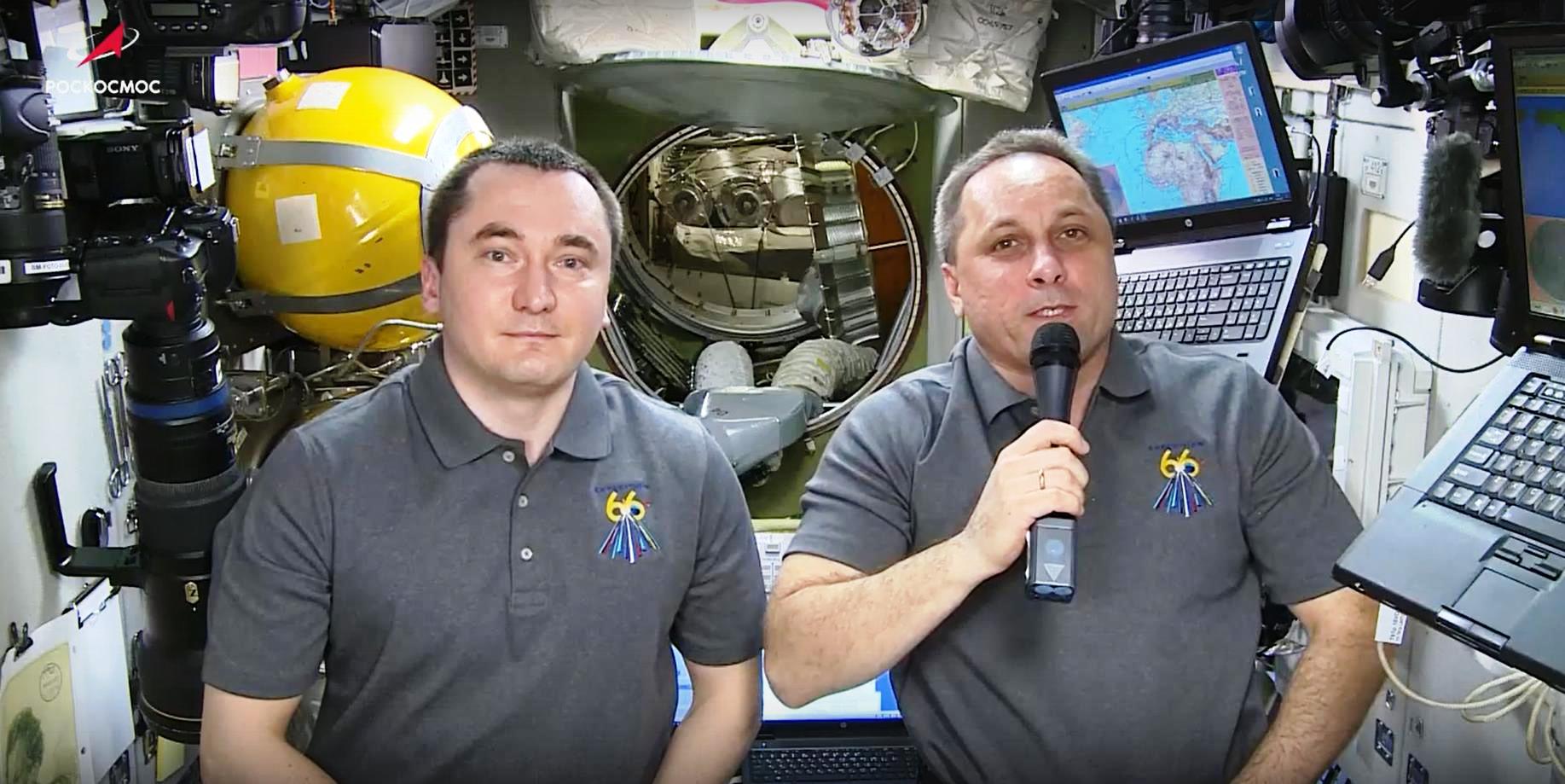 - Дорогие жители России! Мы, космонавты Роскосмоса Антон Шкаплеров и Петр Дубров, приветствуем вас с борта Международной космической станции. Несмотря на то, что мы сейчас далеко от дома, нас тоже интересуют земные проблемы, с которыми вы сталкиваетесь в повседневной жизни. В последнее время одной из них стали мошенничества с использованием высоких технологий. Ежедневно от таких преступлений страдают наши сограждане. А ведь на самом деле — чтобы не потерять свои деньги достаточно соблюдать простые правила.