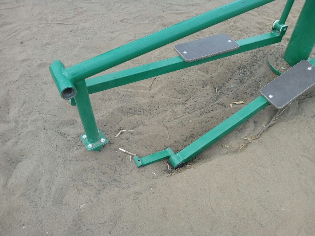 Несколько недель назад парк подвергся нападению либо вандалов, которым важно было просто нанести «увечья», либо воров, решивших заработать. Были сломаны новые скамейки, повреждены новые спортивные тренажеры, на одном из пролетов забора пропала кованая часть ограждения, которая была выпилена в темное время суток.