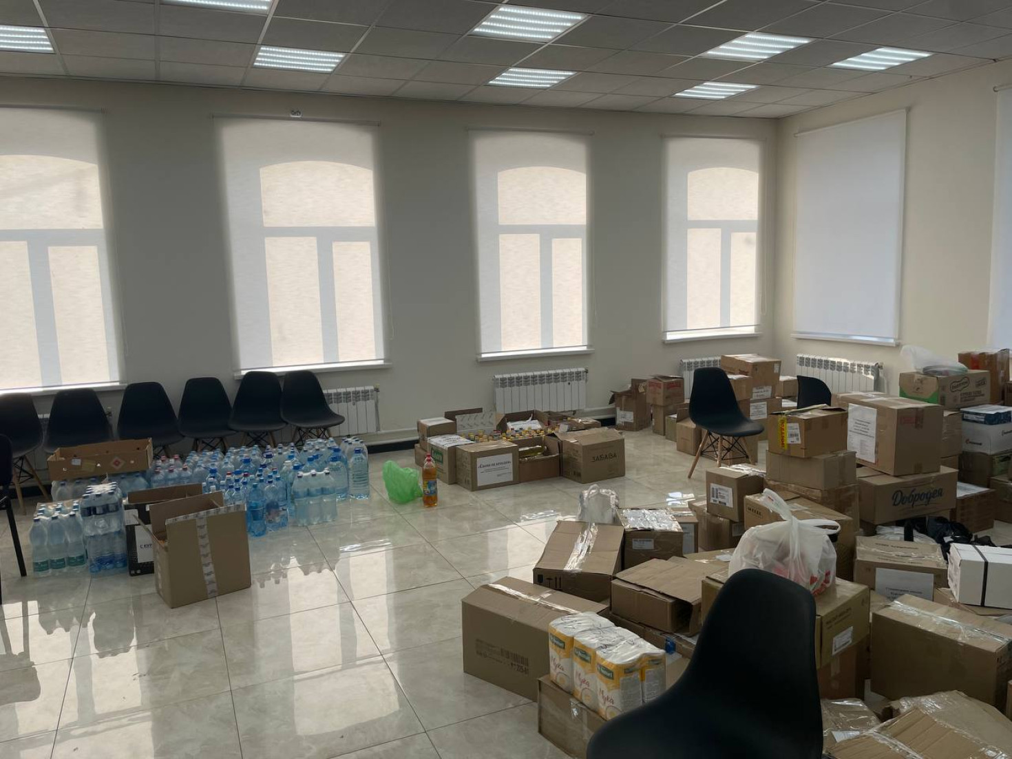 В гуманитарный груз вошли продовольственные товары: крупы, макаронные изделия, воду, мясные и рыбные консервы, а также, предметы личной гигиены, комплекты постельного белья и многое другое.