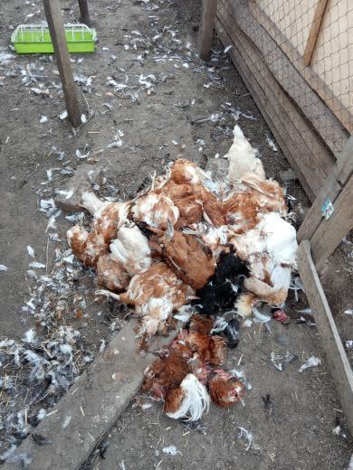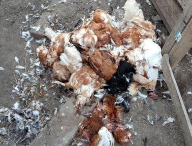 Инцидент произошел сегодня около 4 часов утра. По словам очевидца, семь крупных бродячих псов пробрались в частный двор через соседний, сделали небольшой подкоп под калиткой вольера и стали душить кур. На шум вышел хозяин дома. Увидев эту ужасную картину, он схватил лопату и стал отгонять собак. Животные поспешили скрыться с территории. Одну из "преступниц" удалось поймать, на вид она наполовину охотничья. 27 кур разной породы были уничтожены. Только 7 штук спаслись.