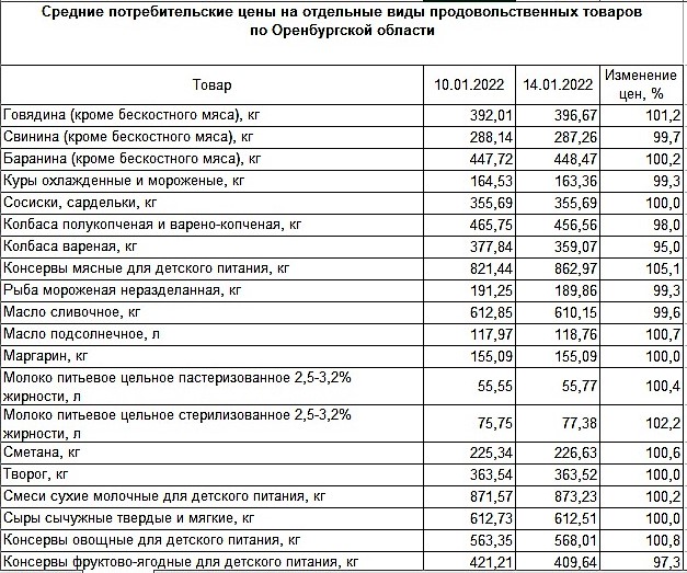 Кроме того, подорожали баранина (от 447,72 до 448,47 рублей за килограмм), масло подсолнечное (от 117,97 до 118,76 рублей за литр), молоко питьевое цельное стерилизованное (от 75,75 до 77,38 рублей за литр), сметана (от 225,34 до 226,63 рублей за килограмм), смеси сухие молочные для детского питания (от 871,57 до 873,23 рублей за килограмм), консервы овощные для детского питания (от 563,35 до 568,01 рублей за килограмм), печенье (от 177,51 до 178,01 рублей за килограмм), чай черный байховый (от 885,37 до 887,43 рублей за килограмм), свекла (от 41,61 до 42,25 рублей за килограмм) и яблоки (от 87,22 до 88,75 рублей за килограмм).