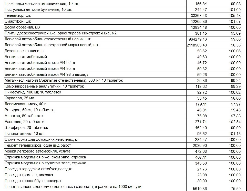 Более подробно с ценами на отдельные виды товаров и услуг можно ознакомиться в таблице: