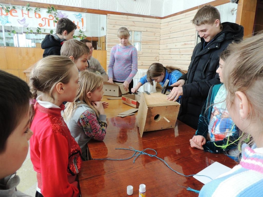 Преображенка находится в северной части Бузулукского района, сегодня там только начинают появляться проталины. В сельском Доме культуры собравшимся школьникам объяснили, что в это время уже прилетевшие с юга птицы не имеют возможности самостоятельно добывать пропитание. И дети смастерили им кормушки из подручного материала.