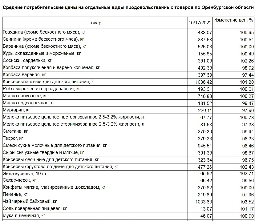 Мука, хлеб, конфеты почти не изменились в цене. Более подробно с изменениями цен на отдельные виды продовольственных товаров можно ознакомиться в таблице: