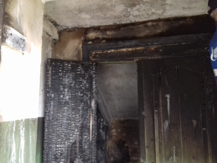 Огонь повредил вещи, внутреннюю дверь в подъезде №4 на площади два квадратных метра. Кроме того, оказались повреждены электрокоммуникации и закопчены стены подъезда с 1 по 5 этажи. Предположительн, причиной пожара стала детская шалость с огнем.