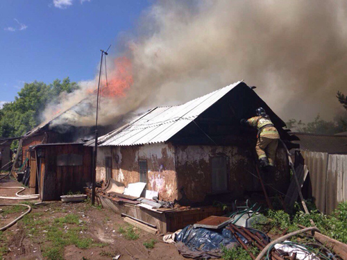 В минувшую среду около двух часов дня по улице Маяковская загорелся частный дом. В пожарную часть обратились очевидцы происходящего, к прибытию спасателей огонь распространился на два здания площадью 90 квадратных метров. Пожарные быстро ликвидировали возгорание. Предварительная причина возгорания - неисправная электропроводка.