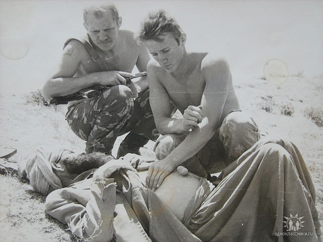 ФОТО: сослуживец Владимира Кустова, врач, оказывает помощь мирному афганцу, 1983 год.
