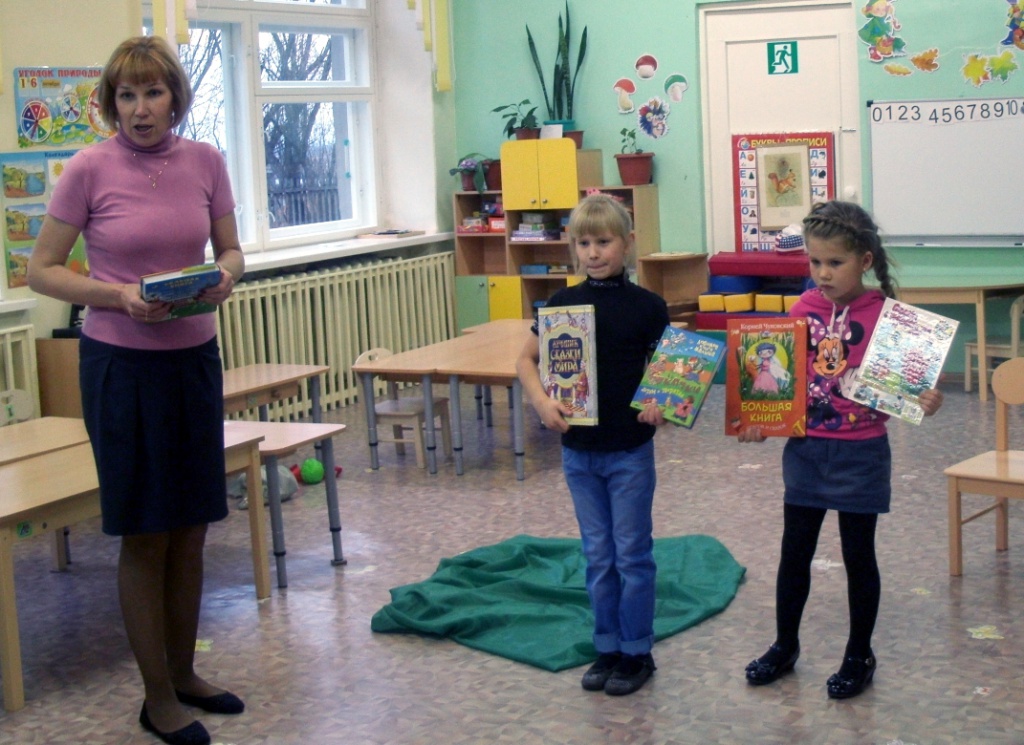 На этот раз библиотекарь вслух читала детям «Мойдодыра» и «Айболита». Оказалось, что многие маленькие слушатели эти сказки знают наизусть: Дима Сурков, Вика Макаева, Серёжа Петрошенко, Элина Подгорнова, а потому они сами продолжили чтения. Потом ребята отвечали на вопросы викторины.