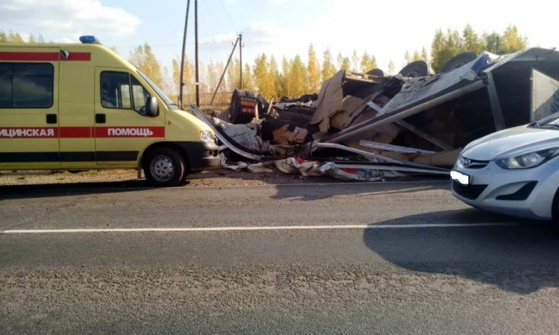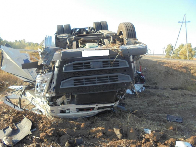 По данным регионального УМВД, водитель автомобиля «Вольво» в составе полуприцепа не выбрал безопасный боковой интервал и допустил касательное столкновение со "Сканией", который ехал по встречке. В результате "Вольво" слетел в кювет и перевернулся. Водитель погиб.