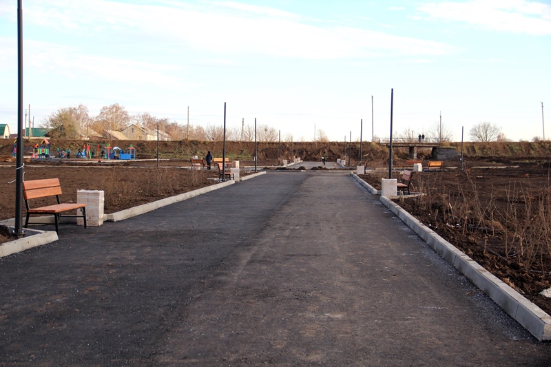 Территорию парка уже очистили от старой растительности, заасфальтировали тротуары, в некоторых местах уложили новую плитку. Работы по первому этапу подходят к завершению. На сегодняшний день уже обустроена центральная аллея и площадь перед аркой, которая установлена при входе в парк. Проведены необходимые коммуникации для системы полива, установлены игровое и спортивное оборудование, а также 14 опор освещения, над водоотводным каналом установлены два металлических моста. Для соблюдения на территории парка чистоты рядом со скамейками установлены бетонные урны с отделкой из дерева «Лотос». Из сборного железобетона выполнено устройство спуска. В целях озеленения парка силами сельчан вдоль центральной аллеи посажено 378 кустов кизильника (живой изгороди). По плану на 2019 год осталось облицевать входную группу, а именно произвести облицовку арочной конструкции природным камнем.