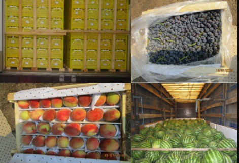 Среди задержанной подкарантинной продукции: арбузы, дыни, абрикосы, персики, нектарины, сливы, яблоки, виноград, мука, лук репчатый и смесь сухофруктов.