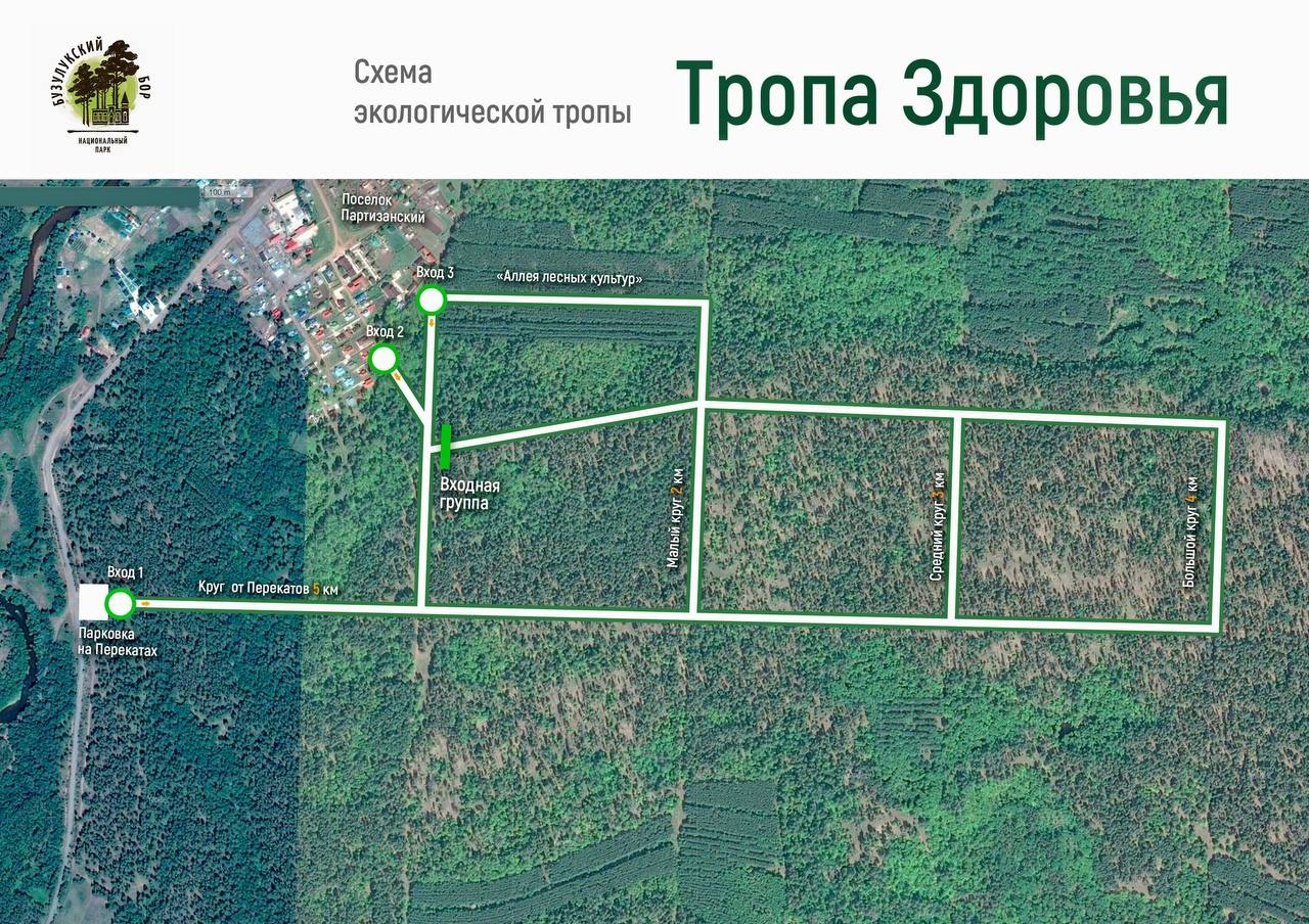 Тропа доступна в нескольких вариантах: пройти её можно по кругам протяжённостью в 2, 3, 4 или 5 километров. Входов на неё три: два из них находятся в районе посёлка Партизанский, ещё один – у парковки на Перекатах, - рассказали в ФГБУ "Национальны парк "Бузулукский бор".
