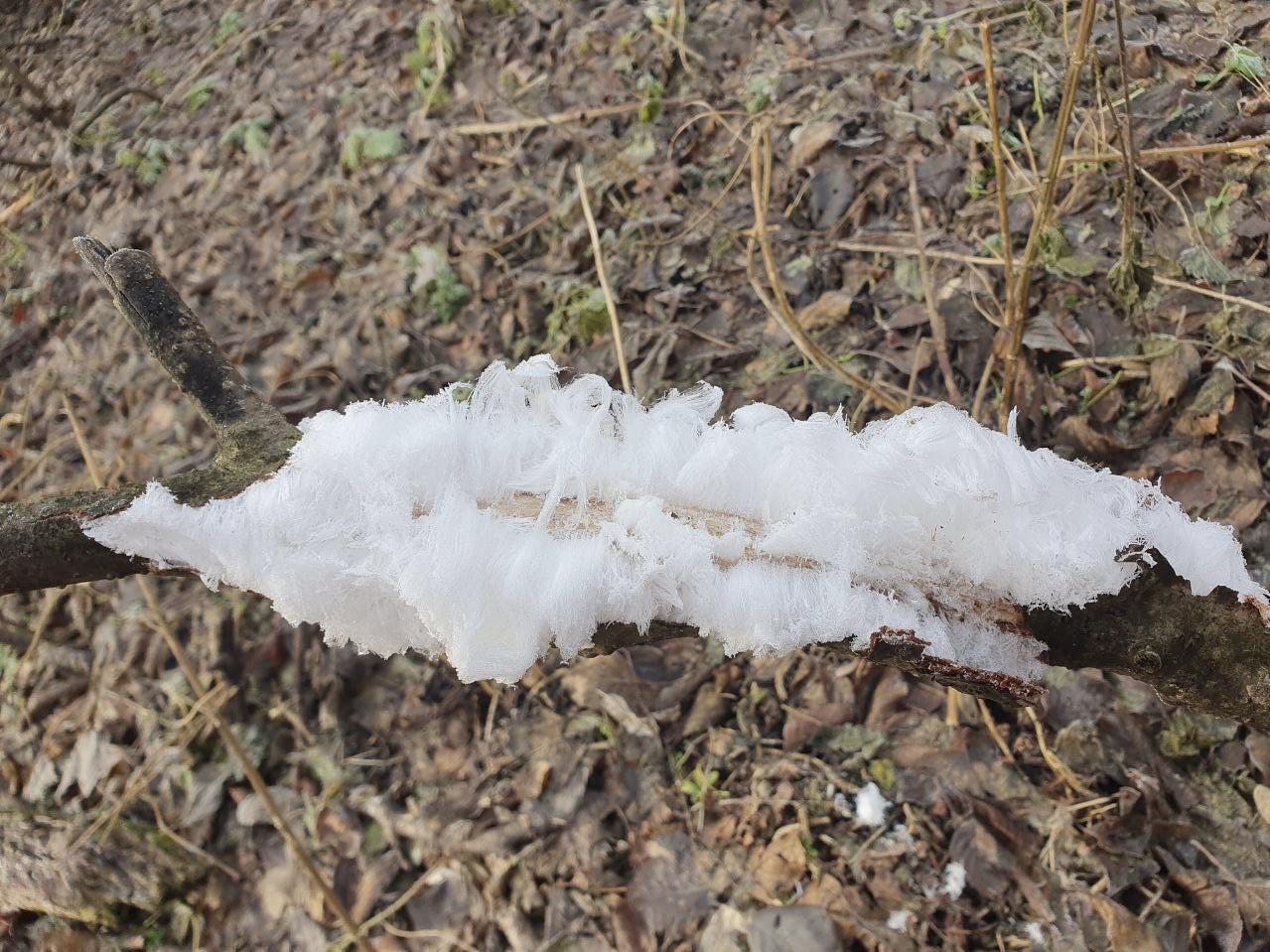 «Ледяные волосы» — редкое природное явление, которое часто путают с плесенью. На подгнившей древесине формируются тонкие нити льда толщиной около 20 микрон и длиной до 20 сантиметров. Интерес к ним возник ещё два века назад, когда наблюдатели впервые зафиксировали необычную форму льда.