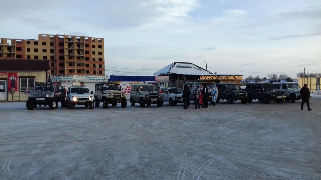 В 17:00 с назначенного места выехало более 10 машин, на борту которых были Деды Морозы, Снегурочка и их помощники.