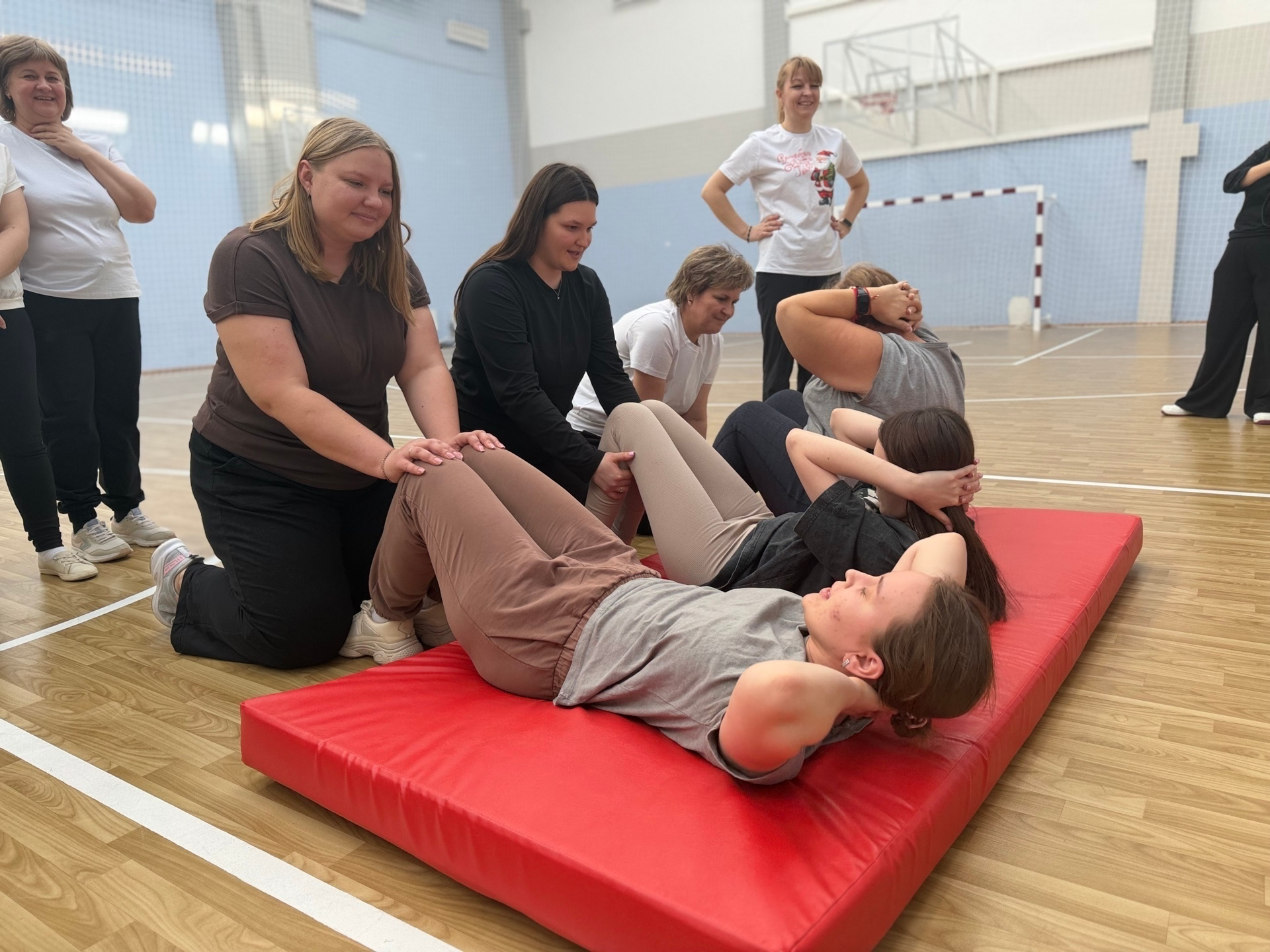 Коллектив школы № 14 принял участие в сдаче нормативов ГТО. Перед стартом провели общую разминку, после чего выполнили испытания на силу, выносливость и гибкость: наклон вперёд, прыжок в длину с места, отжимания, челночный бег и поднимание туловища.