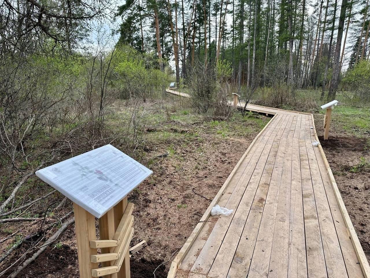 Сотрудники «Бузулукского бора» устанавливают информационные щиты вдоль маршрута. Всего их будет 38 — на каждом коротко и понятно расскажут о местных растениях и животных.