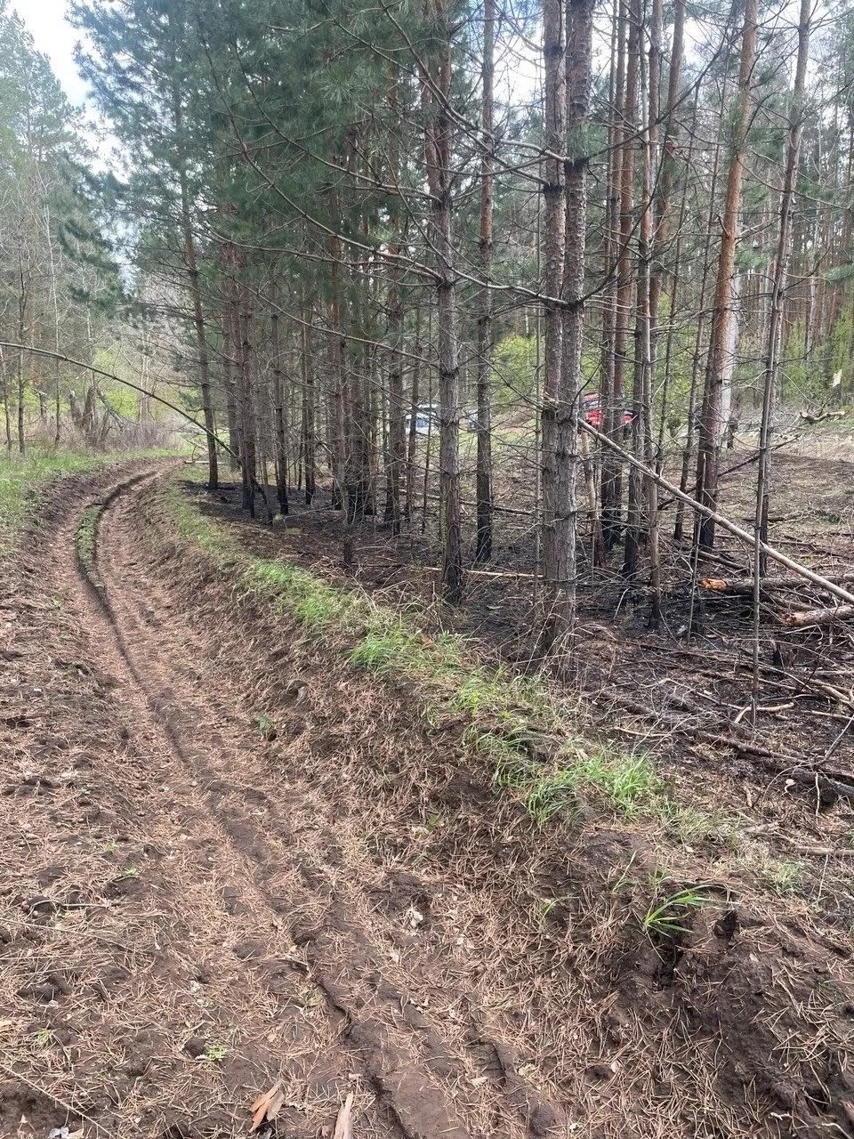 От искры загорелась сухая трава. Огонь мог быстро распространиться по территории леса, однако пожарные оперативно прибыли и остановили возгорание на минерализованной полосе.
