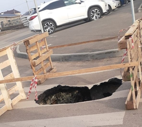 Вслед за подтоплением новых многоквартирных домов в микрорайне "Никольский" начались провалы грунта. Сегодня яма здесь образовалась прямо на проезжей части, где находится пешеходная "зебра". Опасное место сразу огородили, но пока не заделали. Местные жители образовавшийся провал уже прозвали элитной ямой, учитывая новостройки поблизости, либо входом в Нарнию. Стоит отметить, что асфальт на данном участке дороги довольно свеженький.
