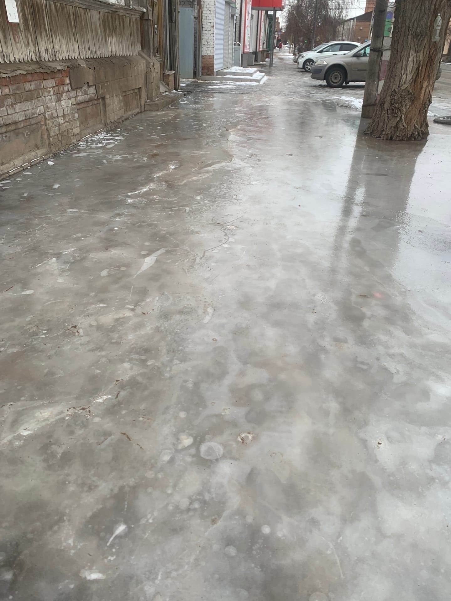 Как видим, лёд не посыпали ни солью, ни песком.
