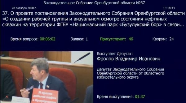 Orenday пишет, спикер заксоба с трудом смог всех успокоить и попросил дождаться 1 ноября, когда министр природных ресурсов, экологии и имущественных отношений Оренбургской области Александр Самбурский обещал решить вопрос с поездкой областных депутатов в национальный парк.