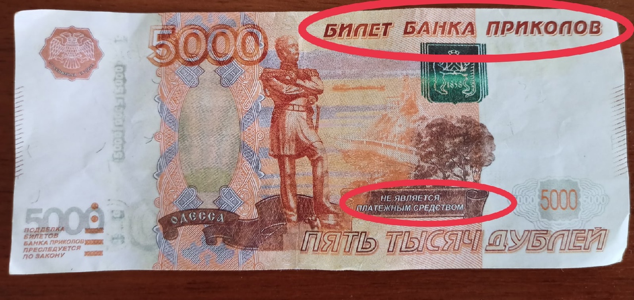 Так, продавец не проверил подлинность банкноты и в итоге у него оказались 5000 “Банка приколов”. Вот только сдачу покупателю мужчина дал настоящими деньгами. Полицейские злоумышленника задержали и возбудили уголовное дело по статье “Мошенничество”.